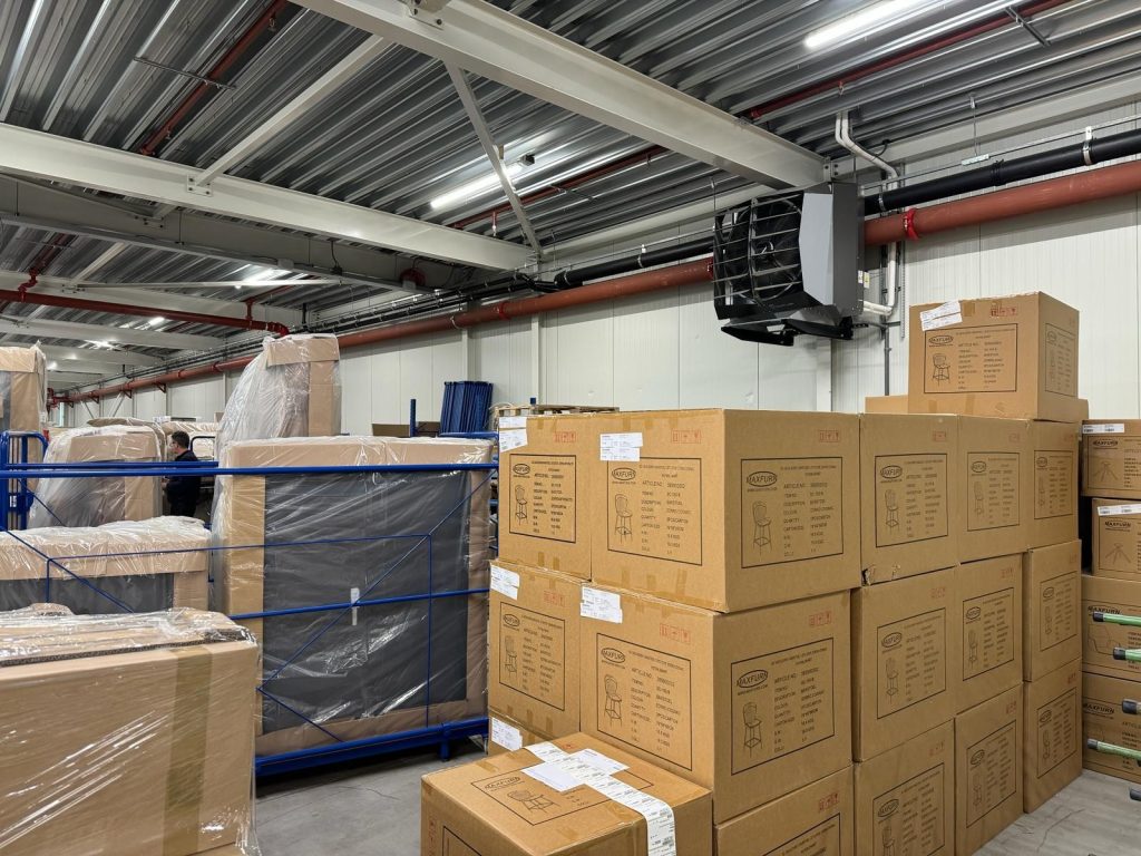 Ons project kende een extra uitdaging door de hoogte van onze hoogbouwmagazijn. Door de speciaal ontworpen De°stratificatieventilatoren wordt de warme of koude lucht van de Warmtepomp°heaters gelijk verdeeld. Zo kunnen we altijd genieten van een optimale tempratuur.